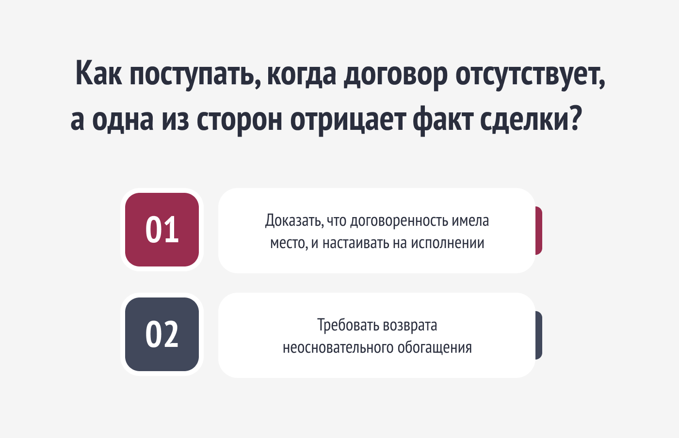 Как поступать, когда договор отсутствует, а одна из сторон отрицает факт сделки?