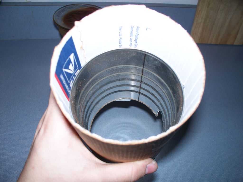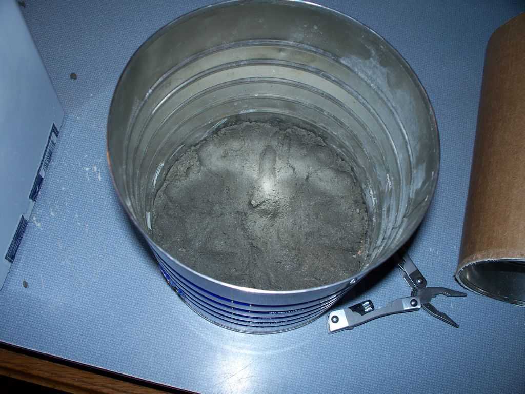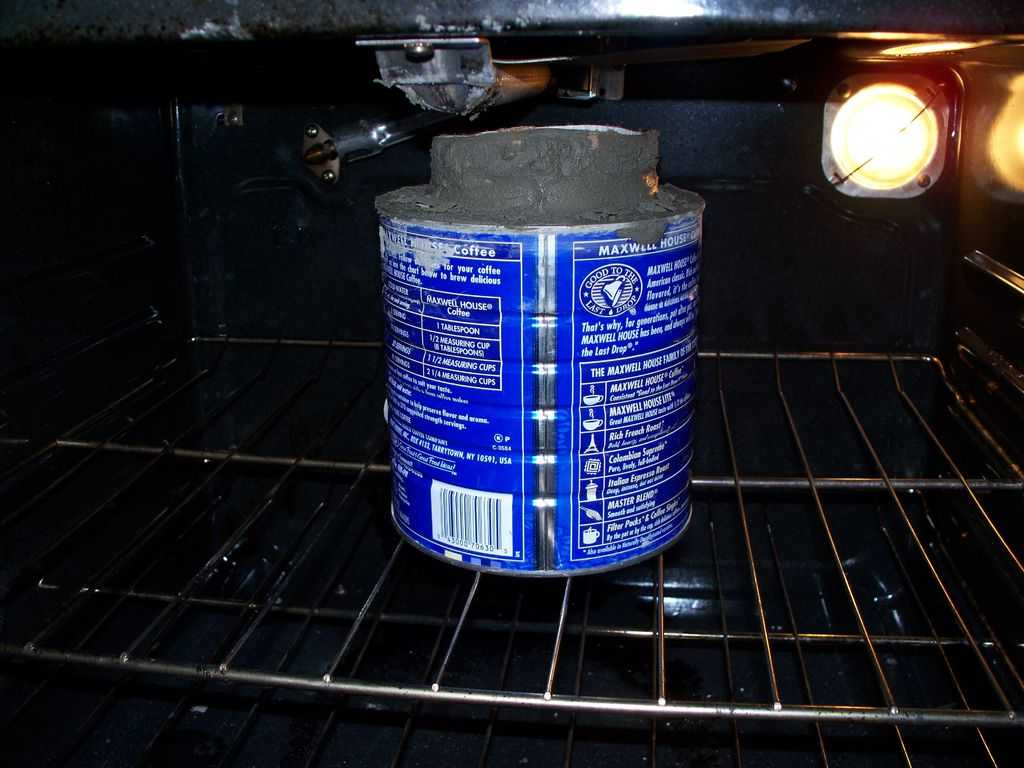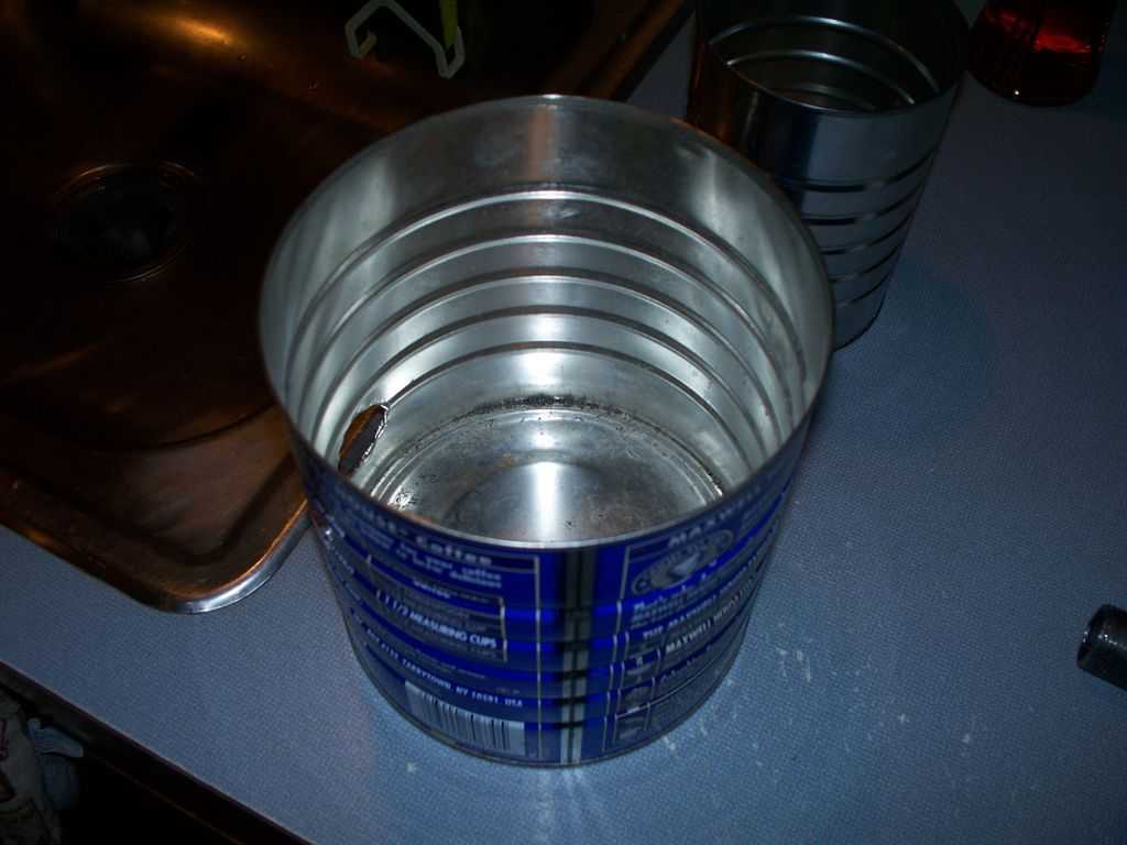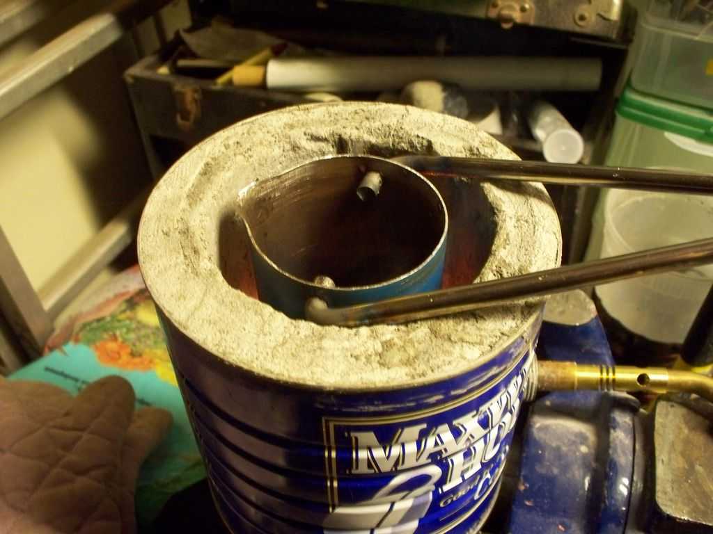 Обычно жестяная банка применяется в качестве тигля. Чтобы добиться равномерного распределения температуры, емкость с алюминием помещают в другую банку таким образом, чтобы зазор между стенками равнялся 1 см. Чтобы обеспечить доступ пламени, нужно проделать в большой банке несколько отверстий по 3-4 см в диаметре. Рассекатель на конфорке удалять необязательно. Так можно добиться равномерного обогрева банки с металлом. Большую жестянку накрывают крышкой, чтобы тепло не выходило.