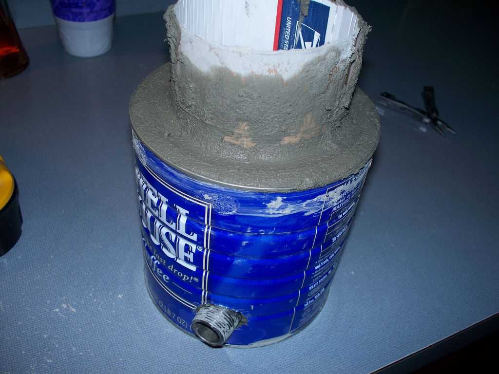 Я советую использовать защиту для глаз. Первый обжиг необходим для устранения влаги. Вы можете увидеть пар, выходящий из цемента. Дайте ему прогореть примерно полчаса, затем оставьте просохнуть на ночь. В конце мы поместили туда тигель, чтобы обжечь его от старой краски.