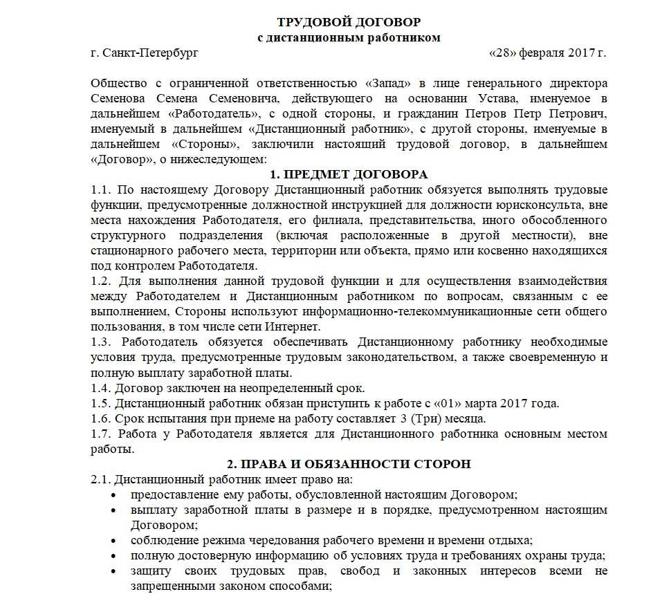 Трудовой договор о дистанционном найме