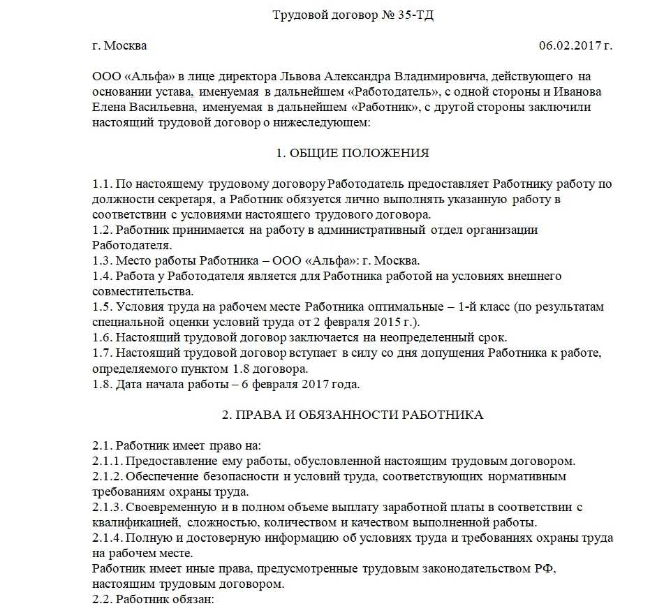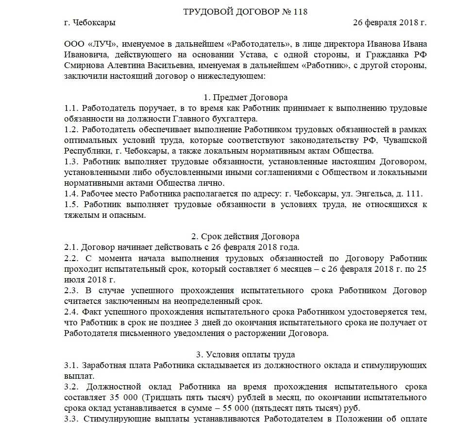 Образец трудового договора на 2018 год